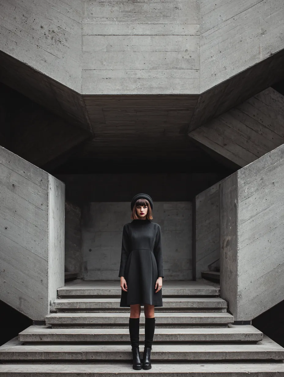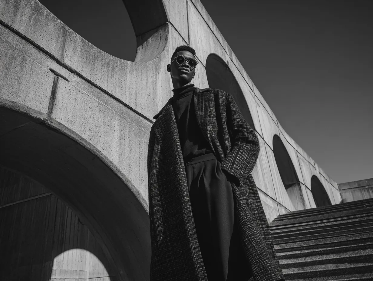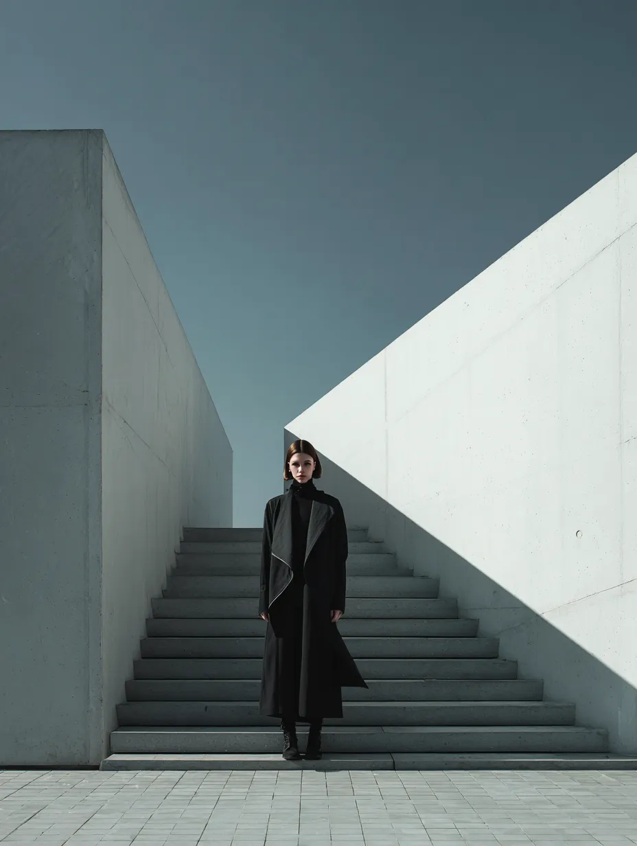 A bold editorial campaign blending urban fashion and architectural geometry for a minimalist aesthetic.